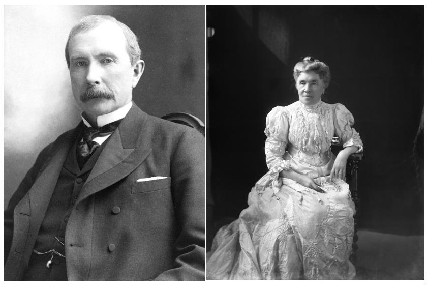 (L-R) John D. Rockefeller and Laura Spelman Rockefeller, Public domain, via Wikimedia Commons