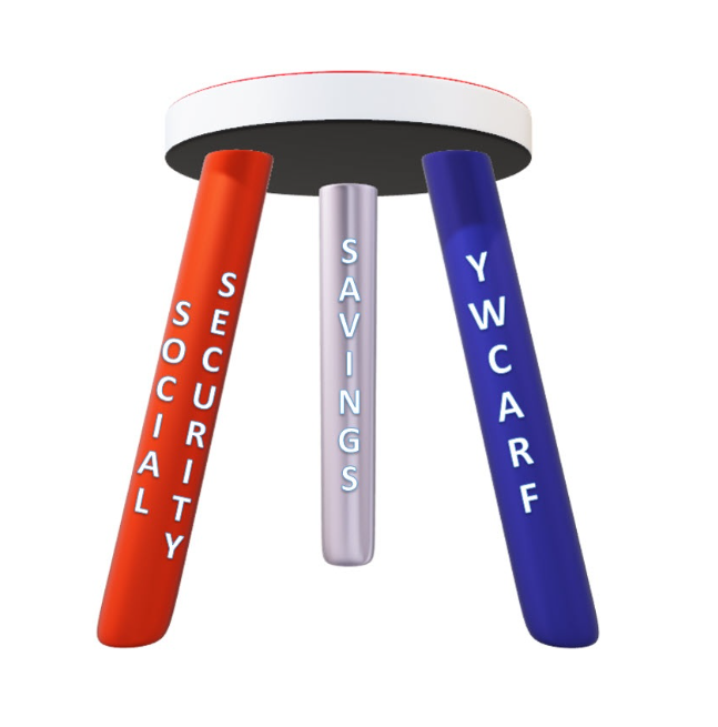 For YWCA employees, retirement savings can be thought of as a three-legged stool: YWCA Retirement Fund pension, Social Security, and personal savings. Whatever gap remains between retirement needs and the first two sources of income must be made up by personal savings.